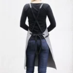 The straps are made of natural cowhide combined with cotton weave. The straps are detachable, as is the loop on the side. We recommend unfastening them before washing. Thanks to the intelligent design of the straps, which are crossed at the back, it allows for size variability in the range of approx. women’s S – men’s L. The dimensions of the apron “body”: length approx. 83cm, width approx. 70cm.