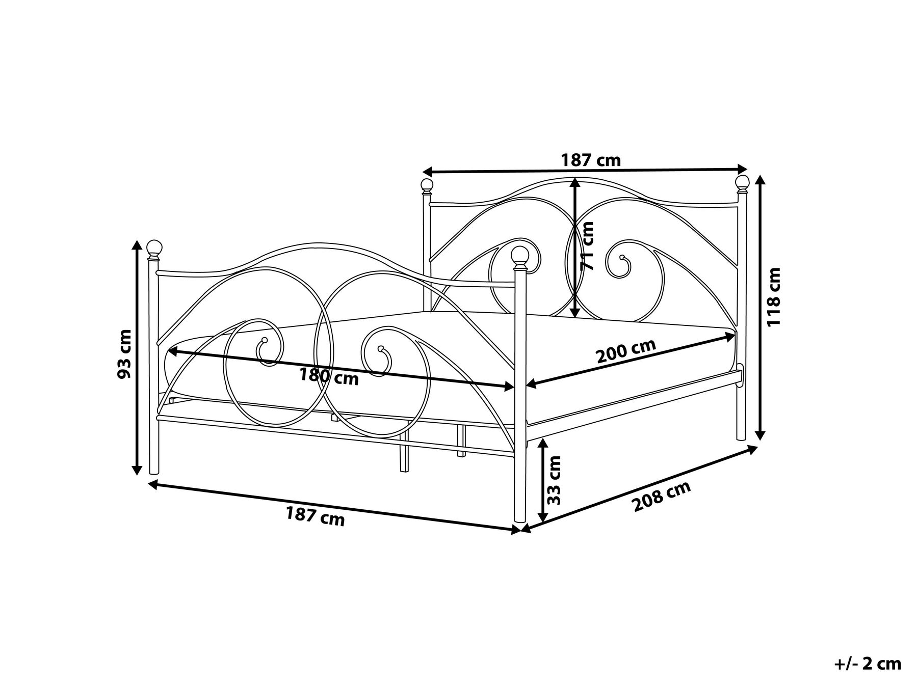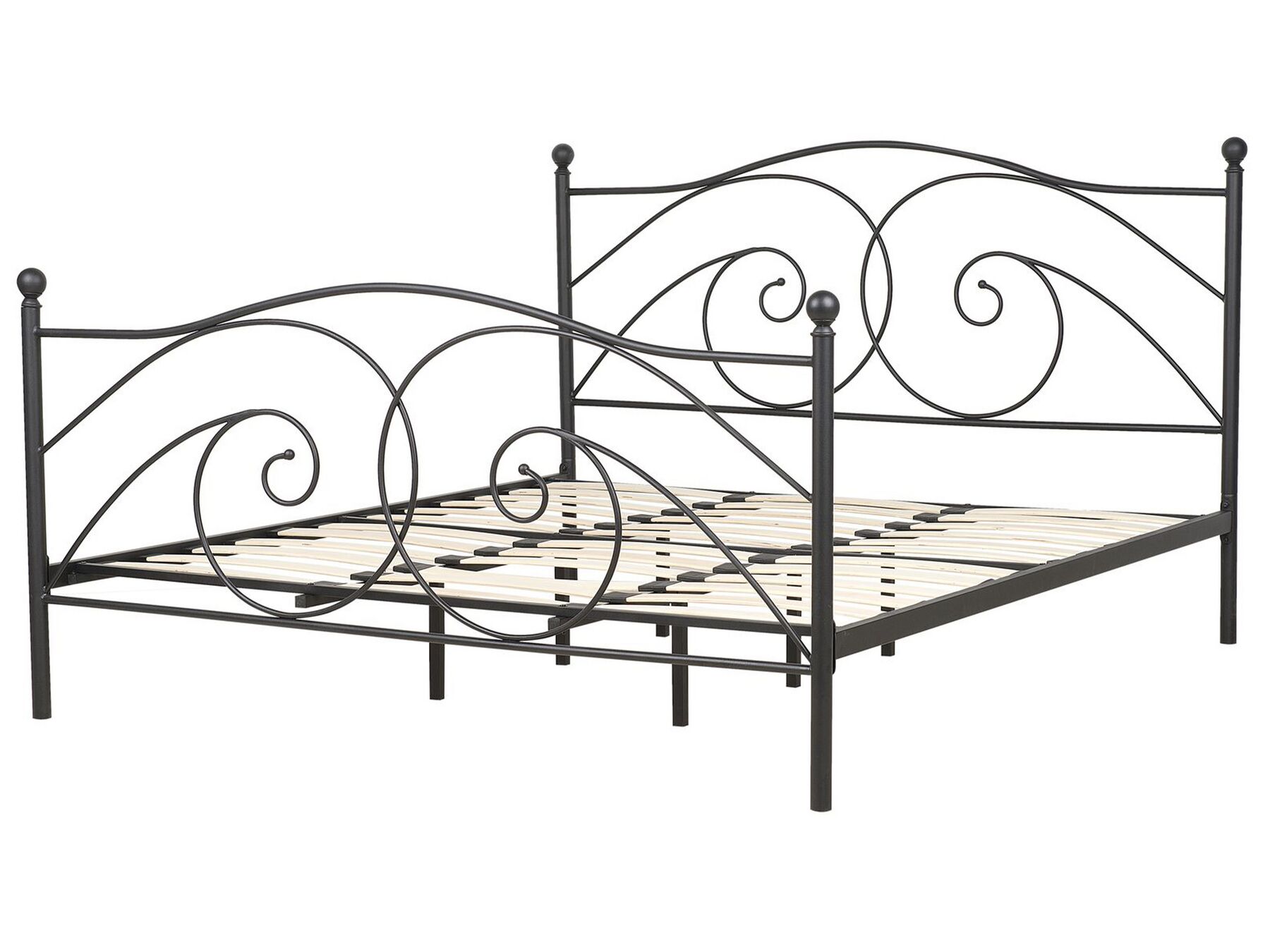 Optimal sleeping comfort and a charming, romantic look are the features that characterise this metal bed frame. The wrought metal, painted in black, creates a sinuous construction of the head- and footboard, scrollwork that fits many home decor ideas. Based on four stable legs with decorative knobs, it combines functionality and style.