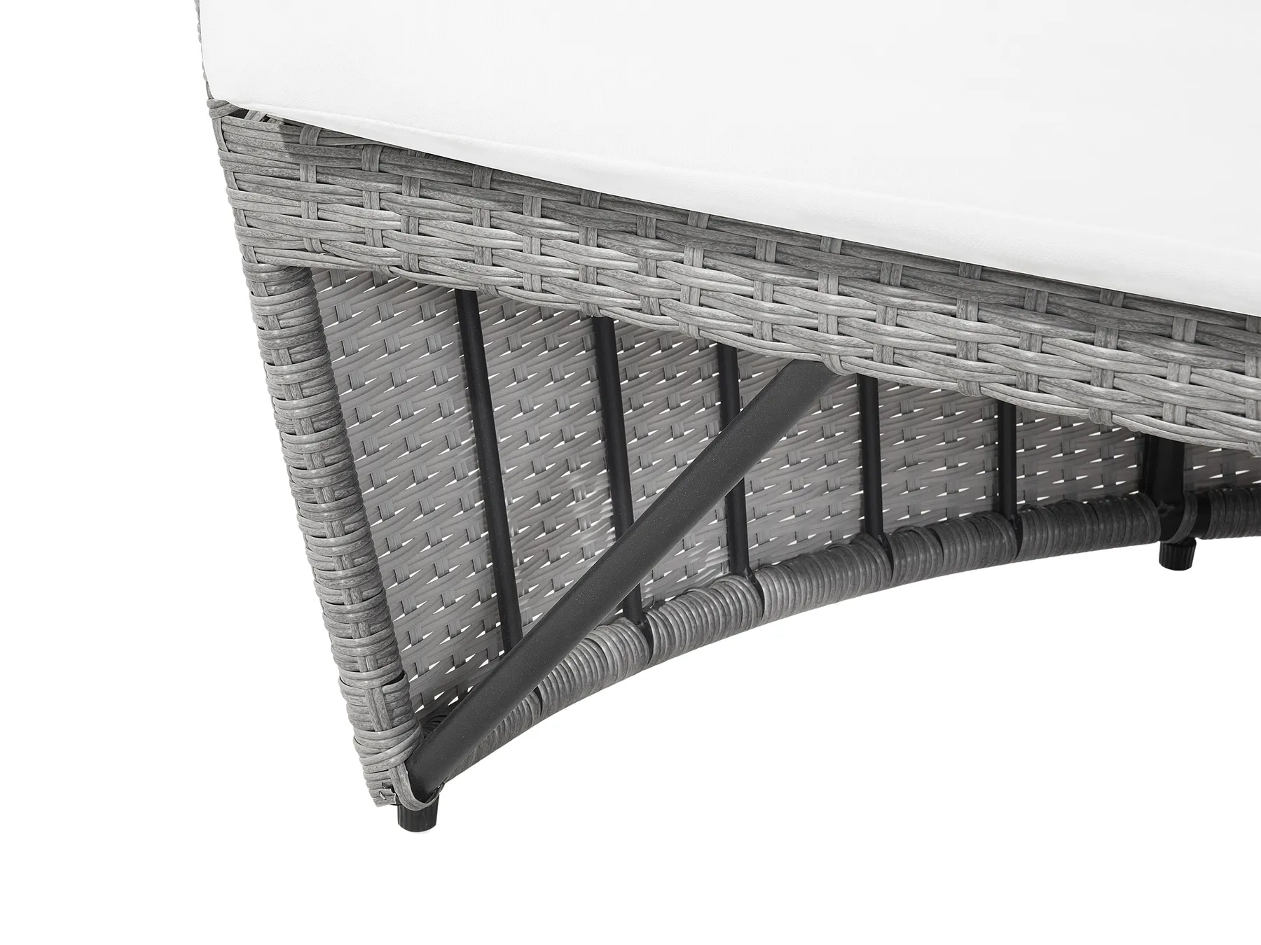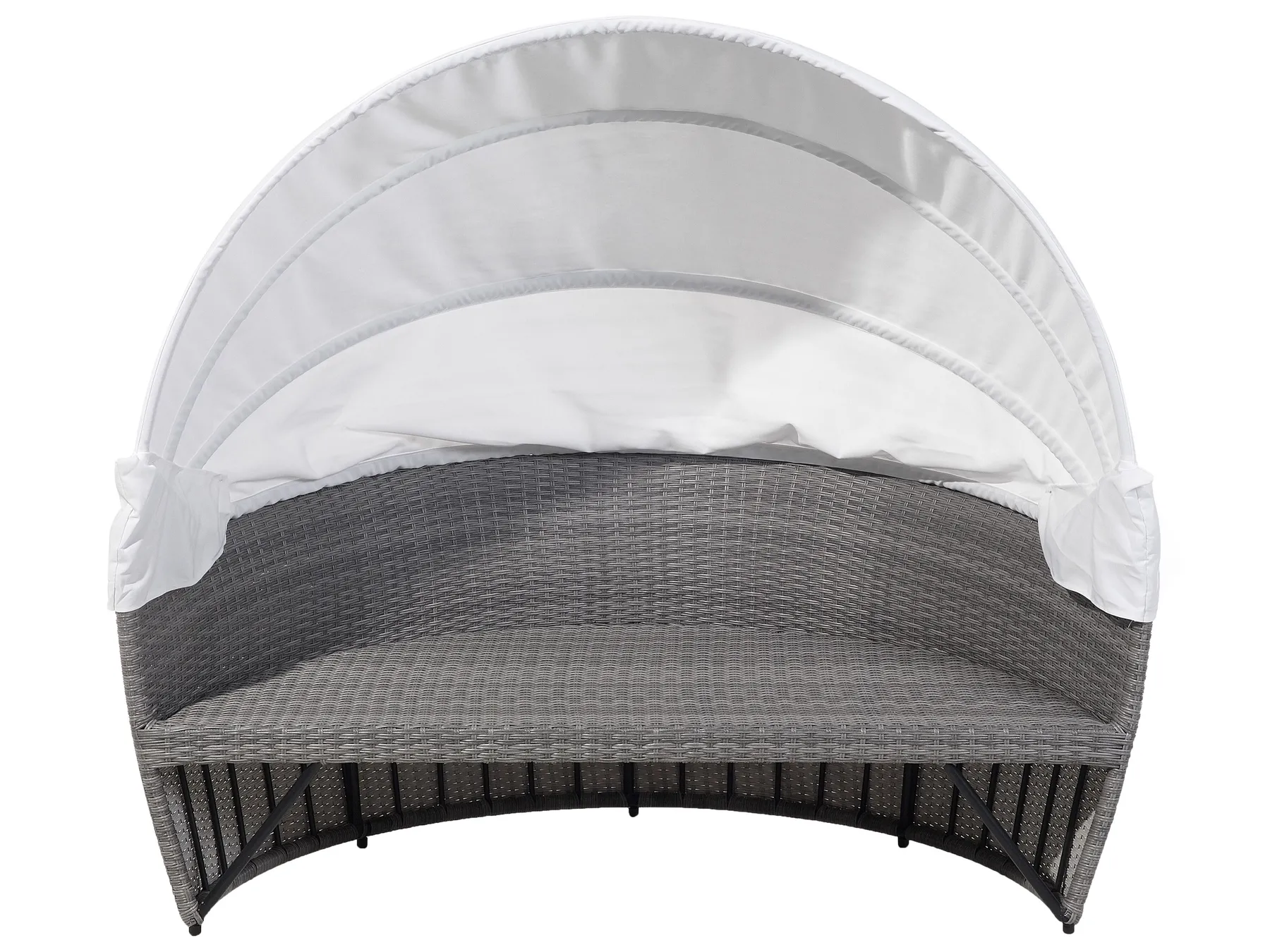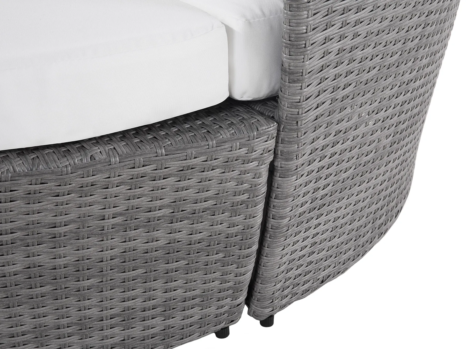 This garden daybed is the perfect combination of sturdy construction and elegant design. It will transform your outdoor living space, giving you a place to relax while remaining comfortable and cool. Make the most of this daybed’s versatility and turn it into a sofa, pull out the coffee table with ease and store it away again tidily. Soft cushions support your body, and the retractable white canopy provides cooling shade. The neutral colours are perfect for a range of garden designs.